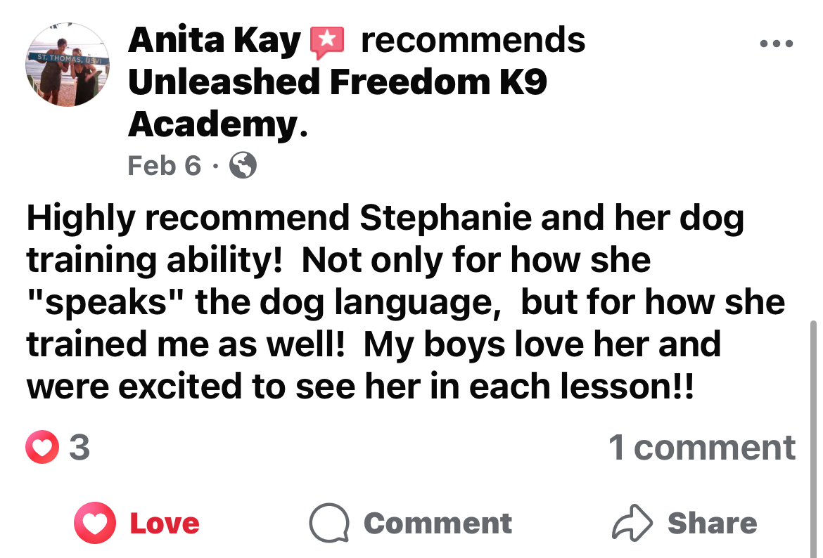 Unleashed Freedom K9 Academy - All Rights Reserved. Privacy Policy. Terms and Conditions.